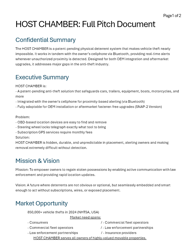 HOST CHAMBER is a one-way communicator that avoids wireless interception. Even if a thief disables power or tries to locate your tracker, the device continues to alert you silently, keeping you in control.